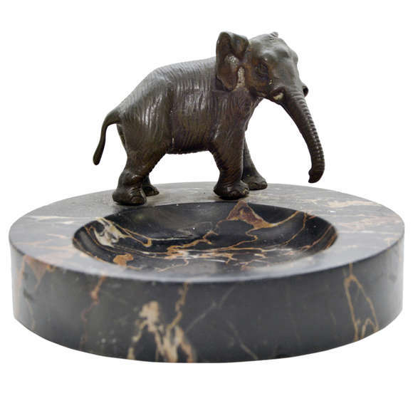 Porta abotuaduras em mármore com figura de elefante em bronze.