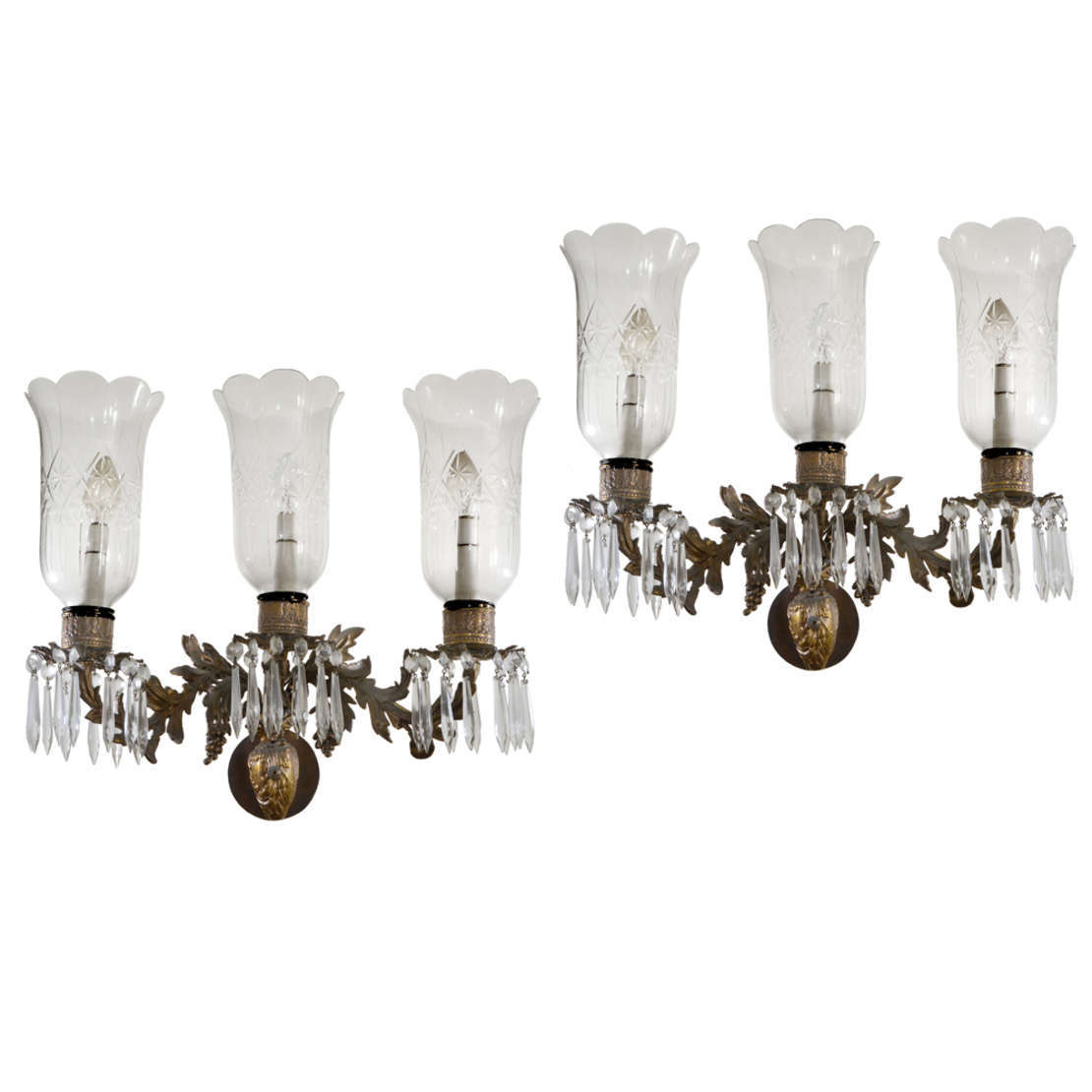 Lustre em bronze trabalhado com mangas e pingentes em cristal lapidado para 12 luzes.
