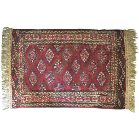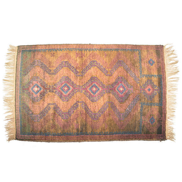 Tapete oriental decorado com motivos geométricos.