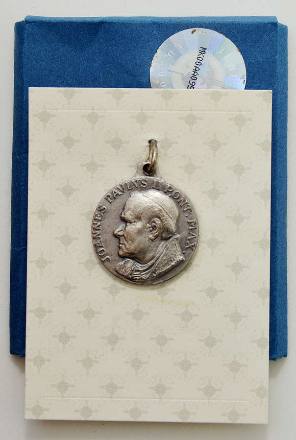 Colecionismo - Medalha em metal espessurado a prata do Papa João Paulo II, no estojo original, setembro 2000, medind...