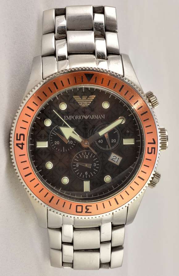 EMPORIO ARMANI - Solid stainless steel, 50 m and 5 atm, medindo a caixa 3,5 cm e a pulseira 20 cm (necessita revisão).