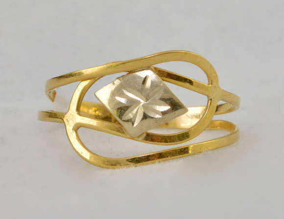 Anel em ouro 18 k decorado com flor central em ouro branco rodinado, Aro 15 e peso aproximado 0.9 g.